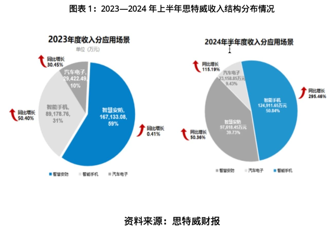 在2024年半年报中,思特威表示,上半年,公司应用于旗舰手机主摄、广角、长焦镜头的高阶5000万像素产品已开始量产销售,品类进一步丰富,产能扩张顺利,出货量均大幅上升,驱动公司智能手机业务收入大增。