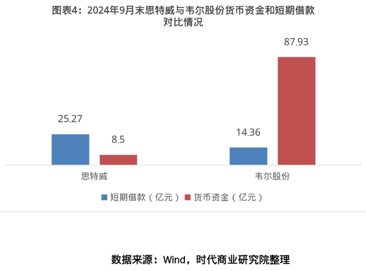 与之形成鲜明对比的是,截至2024年9月末,韦尔股份的货币资金为87.93亿元,短期借款仅为14.36亿元,并未出现货币资金无法覆盖短期借款的情况。