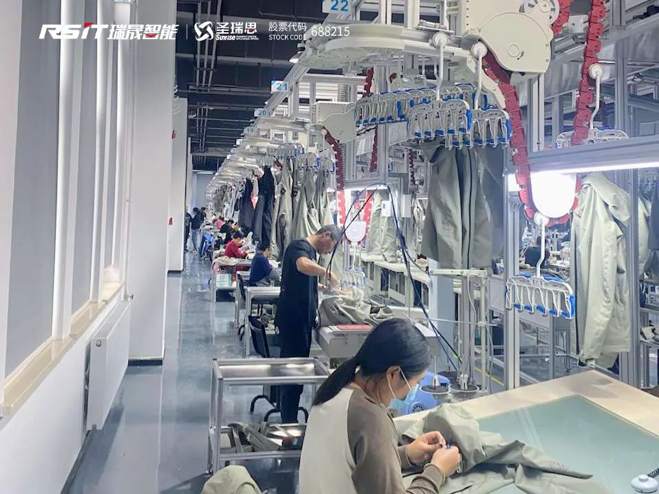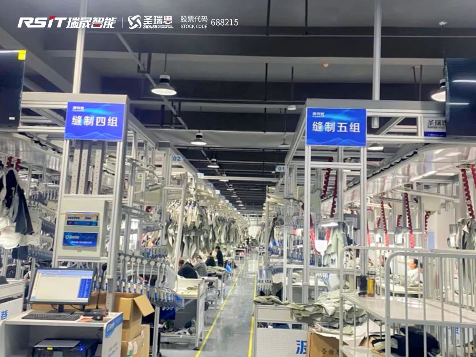 波司登(哈尔滨)携手瑞晟智能打造生产智能吊挂车间,引入智能立体仓储系统、圣瑞思智能吊挂系统、智能分拣系统等技术,实现生产全流程数据追踪、智能分拣与跨楼车间运输。