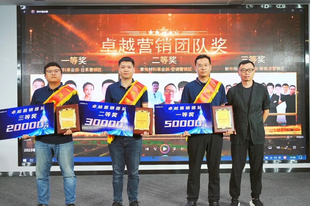 其中,汽车材料事业部日系营销区获得卓越营销团队一等奖,家电材料事业部空调营销区获得卓越营销团队二等奖,新市场材料事业部新能源营销区获得卓越营销团队三等奖。
