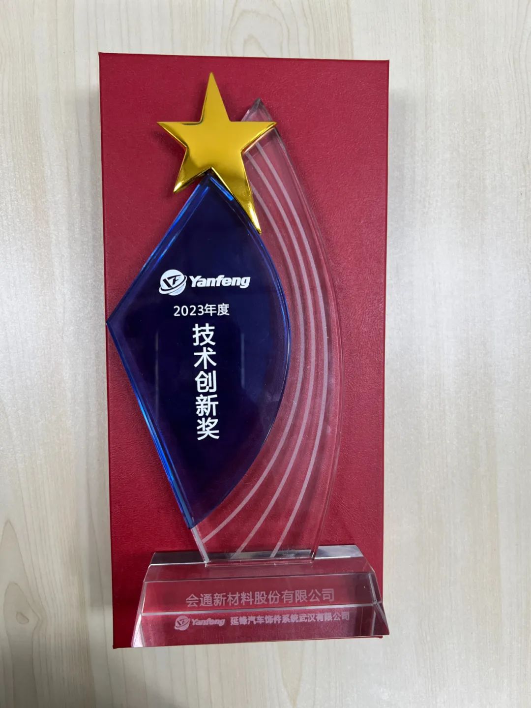 这是会通股份2024年开年来荣获的第一个重磅奖项,此次获奖,不仅是延锋内饰对会通研发实力的高度认可,还将鼓舞我们继续前行,不断提升创新实力。