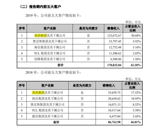 从2018年至2019年,美的集团贡献给会通股份的营收从3.3个亿猛烈涨至12.36亿元。