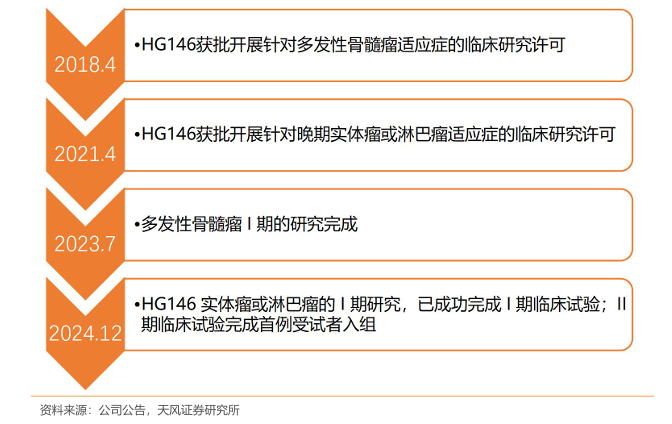 HG146(HDACI/IIb 亚型选择性小分子抑制剂)是成都先导开发的选择性的I类和IIb类组蛋白去乙酰化酶(HDAC)的抑制剂,于2018年4月和2021年4月分别获批开展针对多发性骨髓瘤适应症和晚期实体瘤或淋巴瘤适应症的临床研究许可。2024年12月,公司已完成HG146的I期临床研究,成功获得HG146在人体的安全性、耐受性、初步有效性及药代动力学特征,并获得RP2D(临床II期推荐剂量),用于开发能从HG146获益的适应症。
