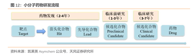 现代小分子药物研发中最重要的基础手段是筛选(Screening),而要进行筛选,首先要发现针对某种疾病指征药物的靶点(Target),如受体、酶、转运蛋白或离子通道、信号蛋白、结构蛋白、微管蛋白、肌动蛋白等;其次还要有小分子库(Library),提供数量足够的分子以筛选,从相应的库里面找到一个或多个符合要求的苗头化合物(Hit),经过层层结构优化得到先导化合物(Lead)、候选化合物(Candidate),再通过系统的临床试验充分验证其安全性与有效性。