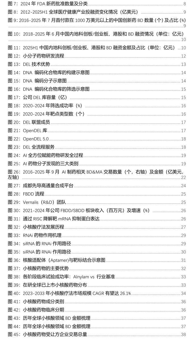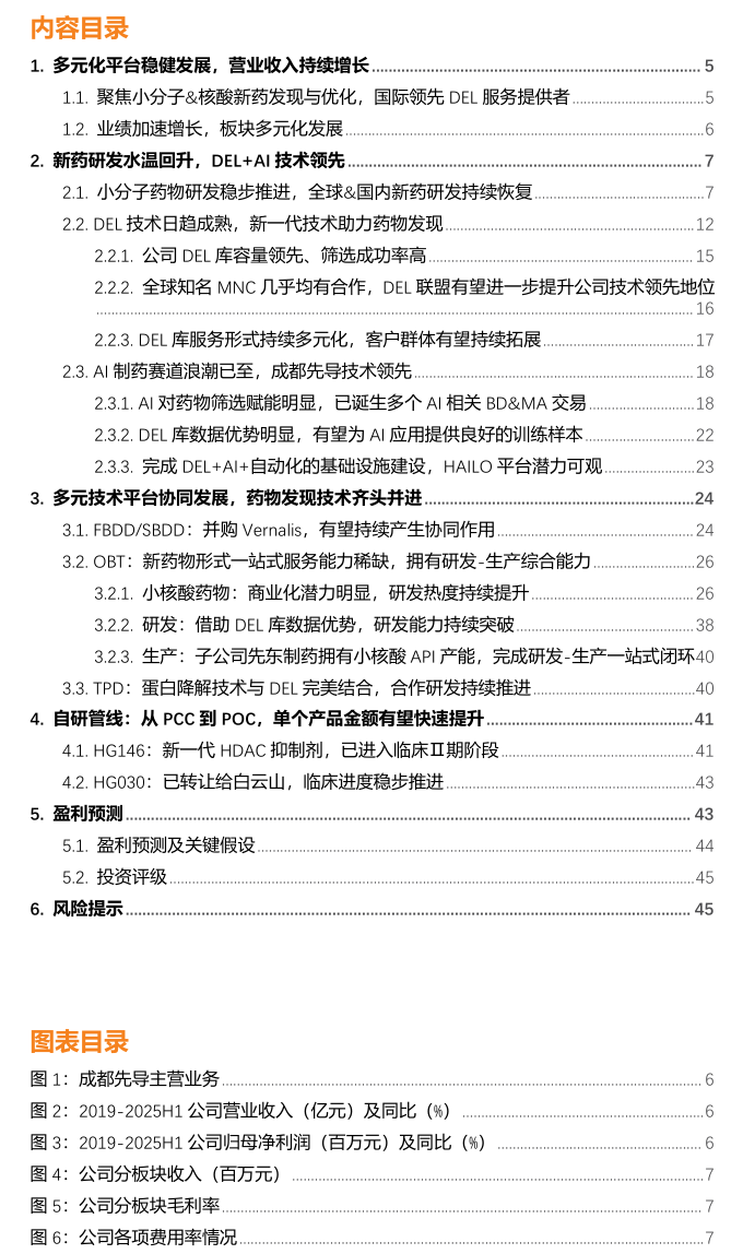 DEL 库持续建设扩展。公司持续扩展DEL库类型,例如共价化合物库、蛋白降解化合物库、分子片段化合物库、线性多肽库、环状多肽库。截至2025年中报,公司环肽DEL库已经积累超过500亿分子,完成多个针对递送系统的环肽分子筛选,筛选出与目标靶点匹配的环肽苗头化合物配体,完成针对分子胶的关键DEL库的设计和合成,拓展自有特殊E3配体DEL库。在新分子研发热度持续提升的当下,我们认为公司的DEL库有望凭借技术积累进一步巩固领先优势。