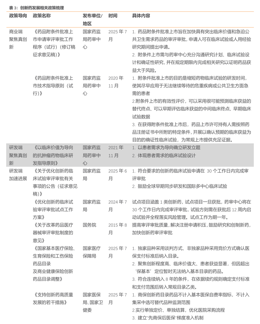 国家持续优化创新药产业政策支持体系,确立支持“真创新”的政策基调。其中2021年《以临床价值为导向的抗肿瘤药物临床研发指导原则》文件的发布推动创新药产业界聚焦具有临床价值的药物开发。2024年7月5日,国务院审议通过《全链条支持创新药发展实施方案》,要全链条强化政策保障,统筹用好价格管理、医保支付、商业保险、药品配备使用、投融资等政策,优化审评审批和医疗机构考核机制,合力助推创新药突破发展。要调动各方面科技创新资源,强化新药创制基础研究,夯实中国创新药发展根基。我们认为在政策的持续下,创新药研发热潮有望持续。