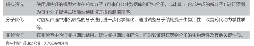 AI 制药主要集中在小分子药物发现领域,而非生物制剂。人工智能在小分子药物发现中具有独特的优势,主要包括:(1)化学信息可用性;(2)大规模虚拟筛选;(3)化学空间探索;(4)高通透性和生物利用度的优化。