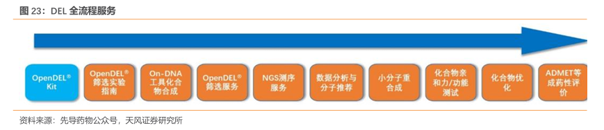 DEL 联盟进展迅速,有望进一步提升成都先导技术领先程度。DEL战略合作联盟过去一年内进展如下:(1)前期工作超预期,成员踊跃参加年度会议,多家公司表示联盟库已占其筛选很大比例,体现对先导技术领先性的认同。(2)各成员贡献市场上买不到的独特建库资源,形成庞大且独特的数据库用于库的设计建设。(3)原协议目标完全达成,所有成员一致同意在合规框架下延续合作,并计划以文章、会议形式分享成果,促进行业新技术应用。并且,DEL联盟合作除了库合成,也同时正在探讨其他DEL技术共享。我们认为DEL联盟内成员包括辉瑞、强生等全球国际制药巨头,且成都先导作为DEL库的供应商,有望在合作中进一步加深与各家的关系、学习各家企业的相关技术积累,夯实自身技术领导地位。