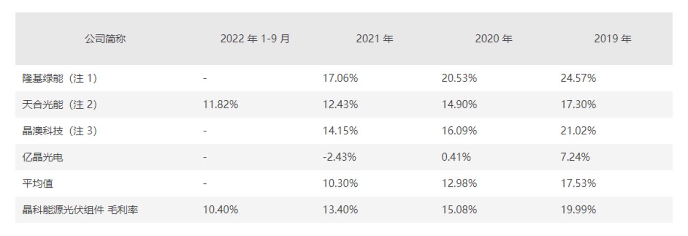 而对于同类企业的毛利率高于晶科能源,晶科能源则解释称,因产品种类、一体化程度不同,不同公司的组件产品销售价格及生产成本存在一定差异,因此其组件业务毛利率情况存在一定的差异。