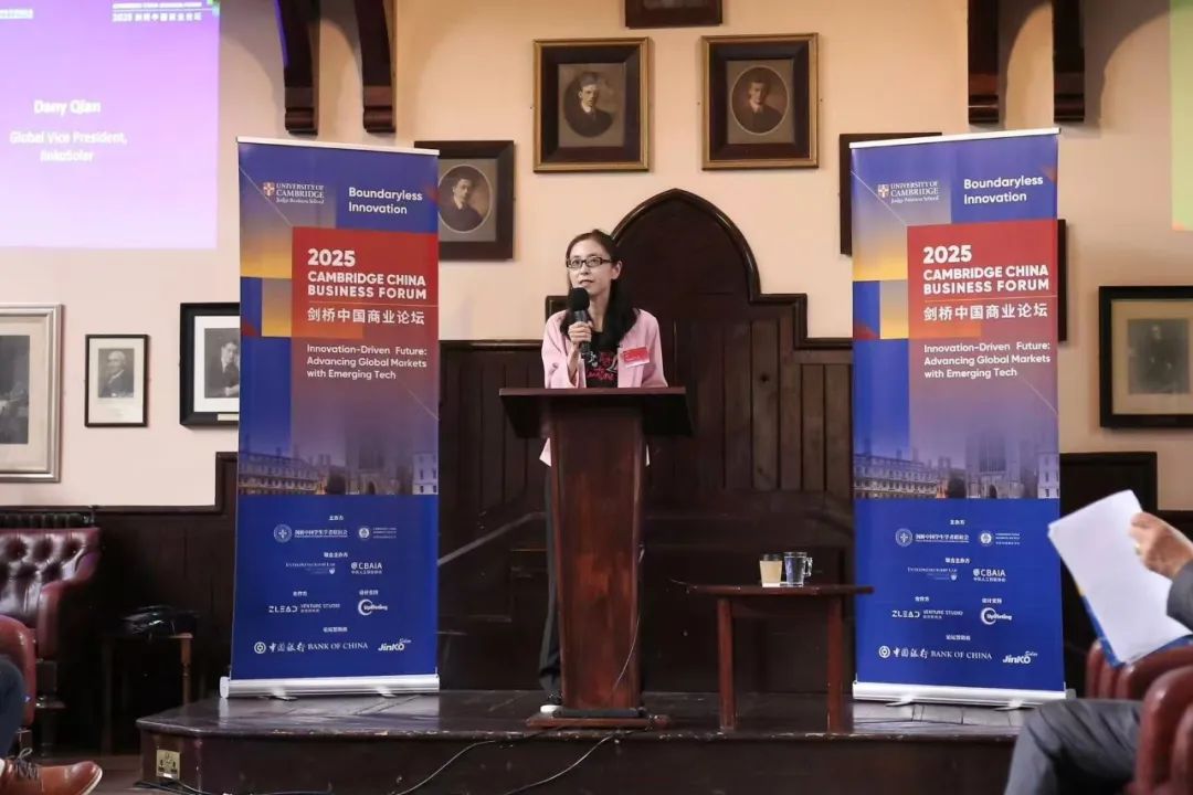 日前,在剑桥大学Judge商学院主办的2025剑桥中国商业论坛上,全球光储领军企业晶科能源成为绿色技术领域的关注重点。晶科能源副总裁钱晶女士受邀作为主旨演讲嘉宾,在“绿色技术:赋能可持续未来”环节,向全球政商学界精英分享了晶科推动绿色能源变革的实践经验与全球布局。本届论坛聚焦“AI颠覆”、“绿色科技”等前沿议题,为深化中英乃至全球工商界的交流与合作搭建了重要桥梁。