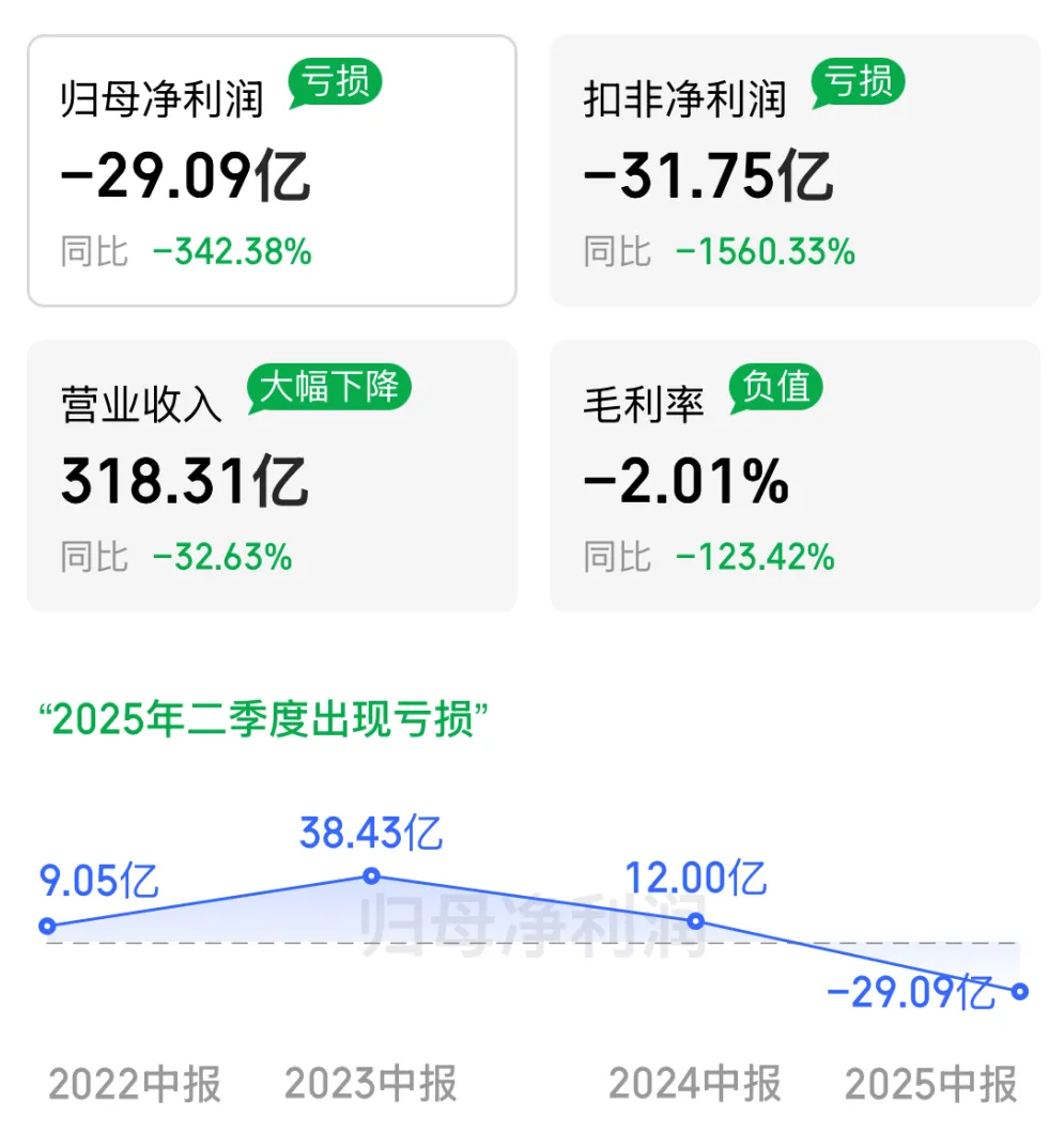 8月28日,晶科能源披露了2025上半年的业绩,截至报告期末,公司营业收入为318.31亿元,同比下降32.63%;归母净利润亏损29.09亿元,同比下降342.38%。