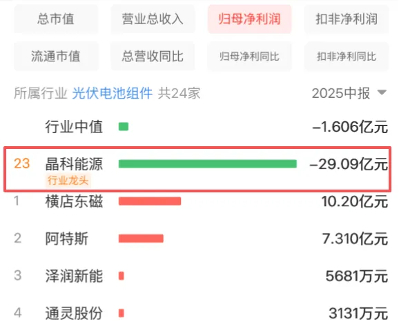 巴山特意看了下光伏电池组件板块,主要的24家公司营收利润排行统计,晶科能源上半年总营收为318.3亿,排名第二,仅次于隆基。但是净利润方面,却是排在了第23位,倒数第二,天合垫底...