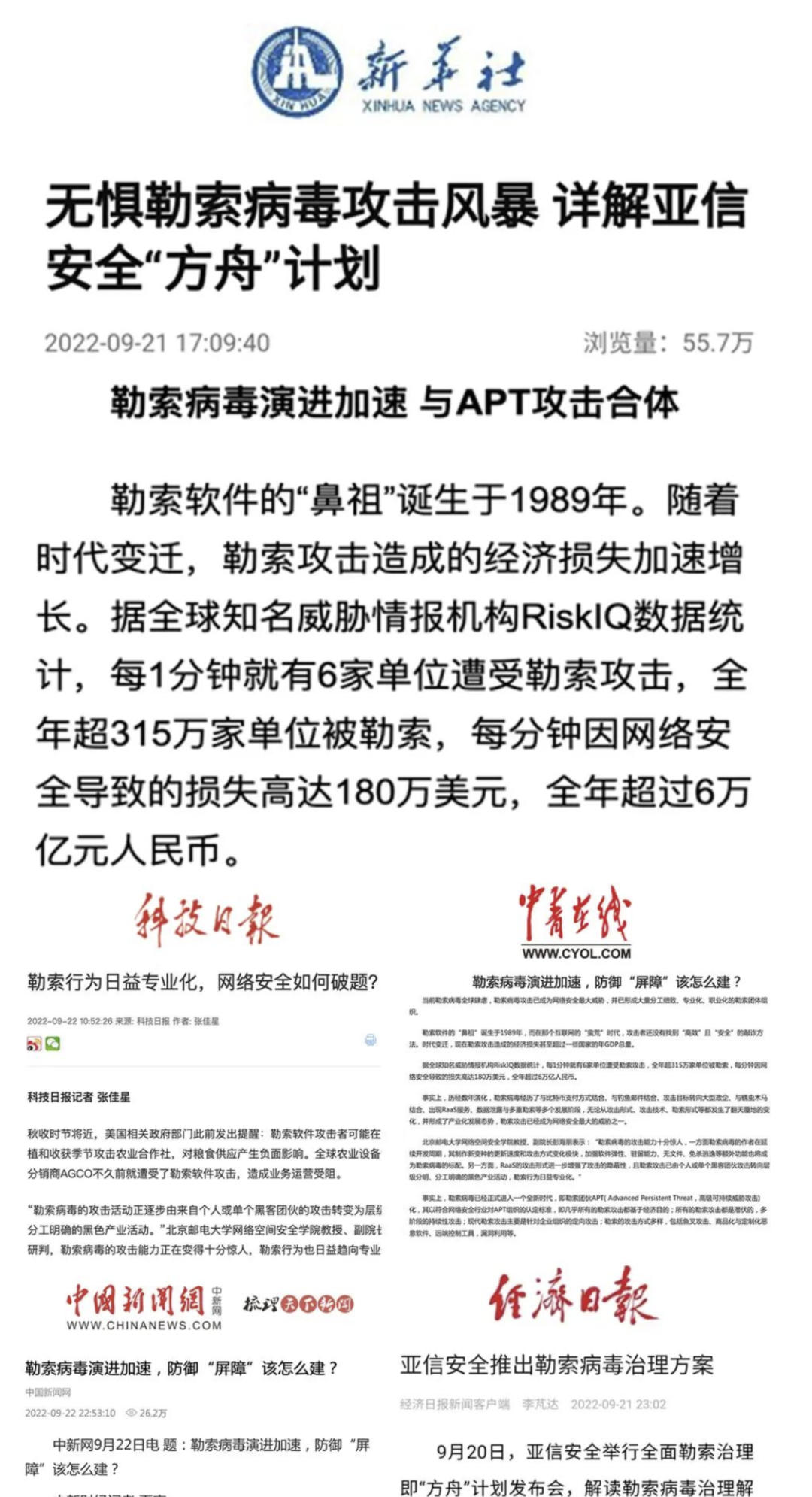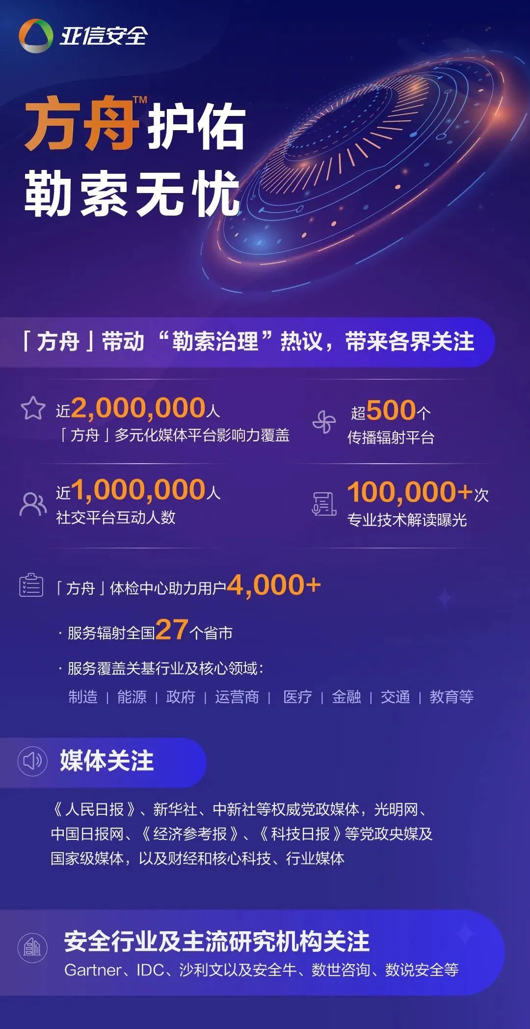自亚信安全勒索治理「方舟」计划上线以来,引发来自媒体及各行业用户对于勒索攻击危害的关注,方舟引领勒索病毒治理的新航向。
