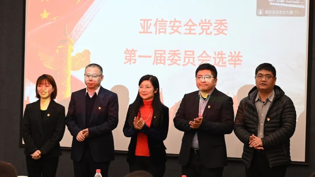 2023年2月9日,中共亚信安全科技股份有限公司委员会成立暨选举大会在南京召开,本次会议是亚信安全党组织从党总支升格为党委的重要里程碑时刻。会议选举出亚信安全党委第一届委员会委员,刘东红同志当选亚信安全党委书记,李伦文同志当选亚信安全党委副书记。中国(南京)软件谷党政办公室主任、软件产业党委书记翟高峰,亚信安全董事长何政出席会议。