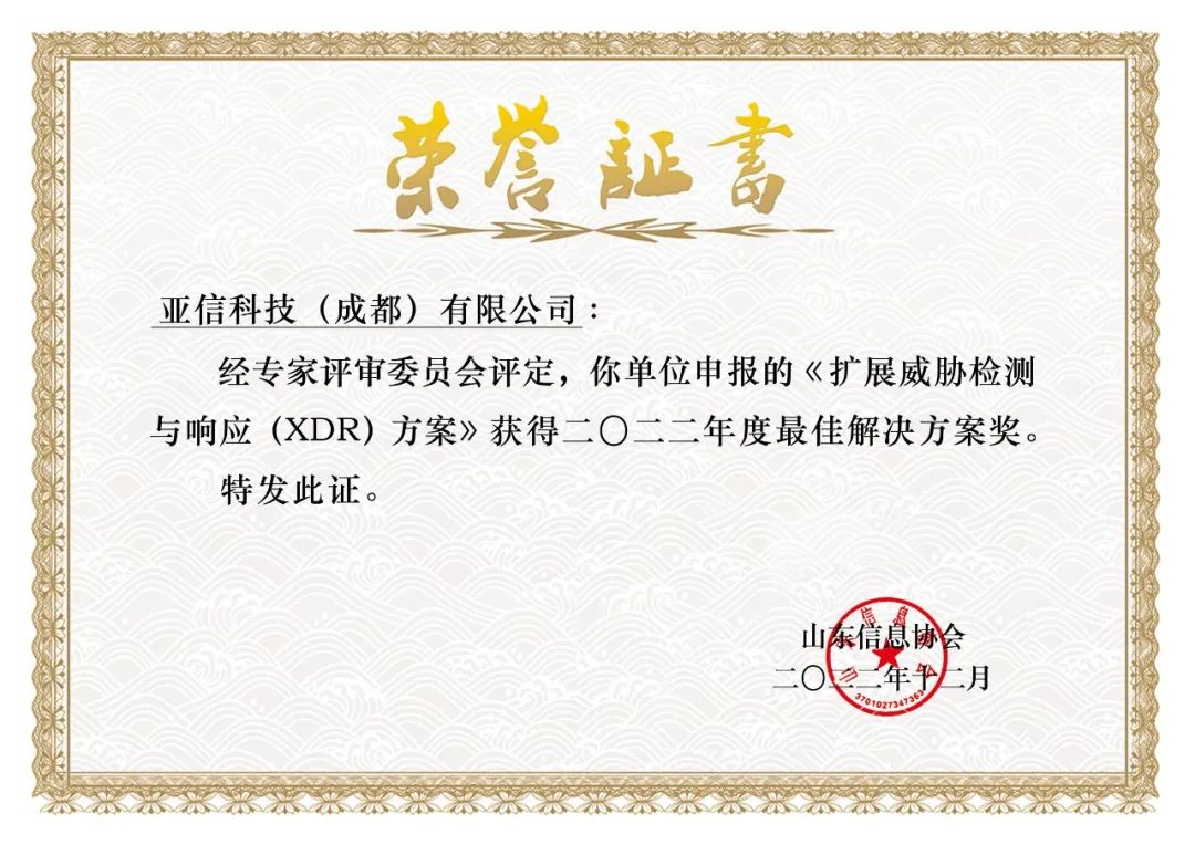 本次入围“2022年度最具影响力企业”、“2022年度科技成果奖”、“2022年度最佳解决方案奖”,是对亚信安全核心技术实力的充分认可。近年来亚信安全凭借在云安全、终端安全、高级威胁治理、工控安全、信创安全等领域的技术能力,从实战出发,助力多行业用户全面提升网络安全防护能力。