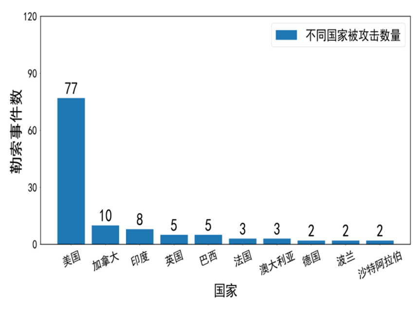 本周监测到勒索事件147起。本周对公共安全造成重大影响的Top10事件如表2.1所示。随后本文在勒索事件详细跟踪分析部分对表中的一些重点事件进行了详细描述。