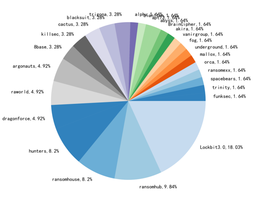 图1.7 2024年下半年至今攻击中国区域的勒索家族分布图