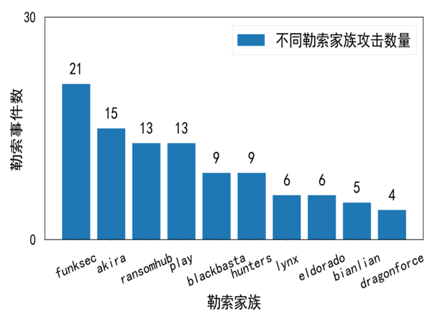 2024年下半年至今,中国区域的勒索家族活跃情况分布如图1.7所示。