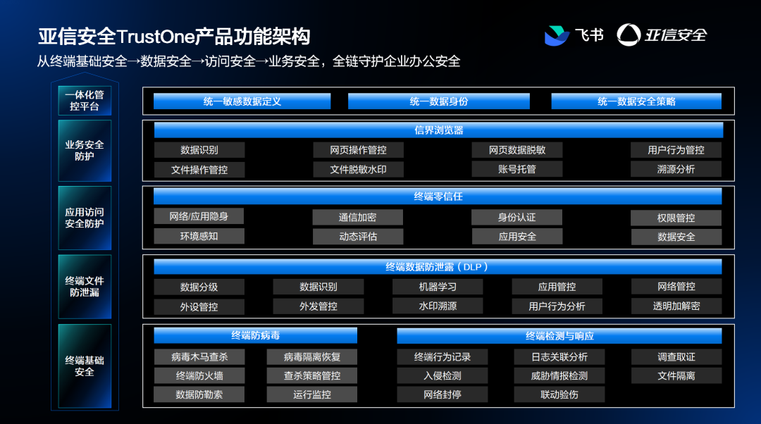 亚信安全TrustOne的立体化能力,在保障飞书终端安全与提升业务效率方面表现卓越: