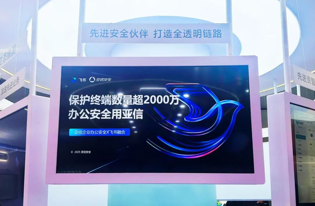 今日,2025飞书未来无限大会隆重举行。作为飞书的重要合作伙伴,亚信安全受邀参会,并在大会现场重磅展示了基于亚信安全终端安全TrustOne的企业办公安全一体化解决方案,联合飞书共同为数字化转型中的企业提供全方位安全保障。