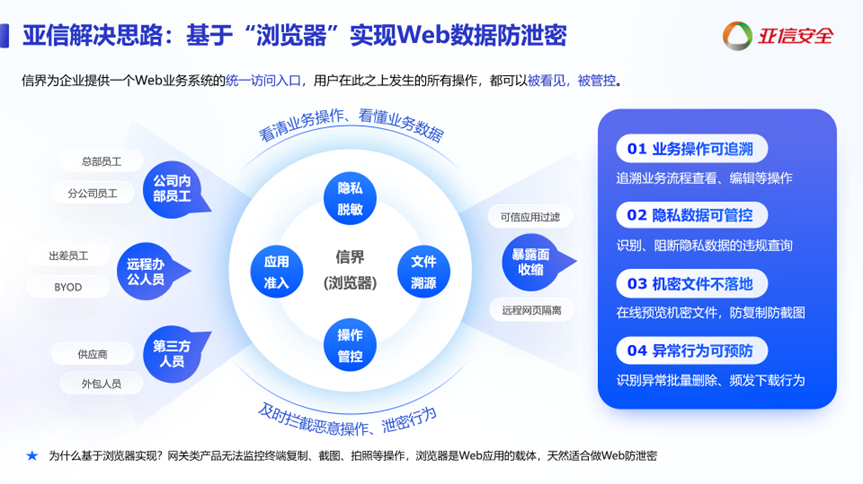 从“被动堵漏洞”到“主动建防线”:针对Web场景“数据动态流转、操作碎片化”的特点,构建“业务系统→浏览器”全链路管控;