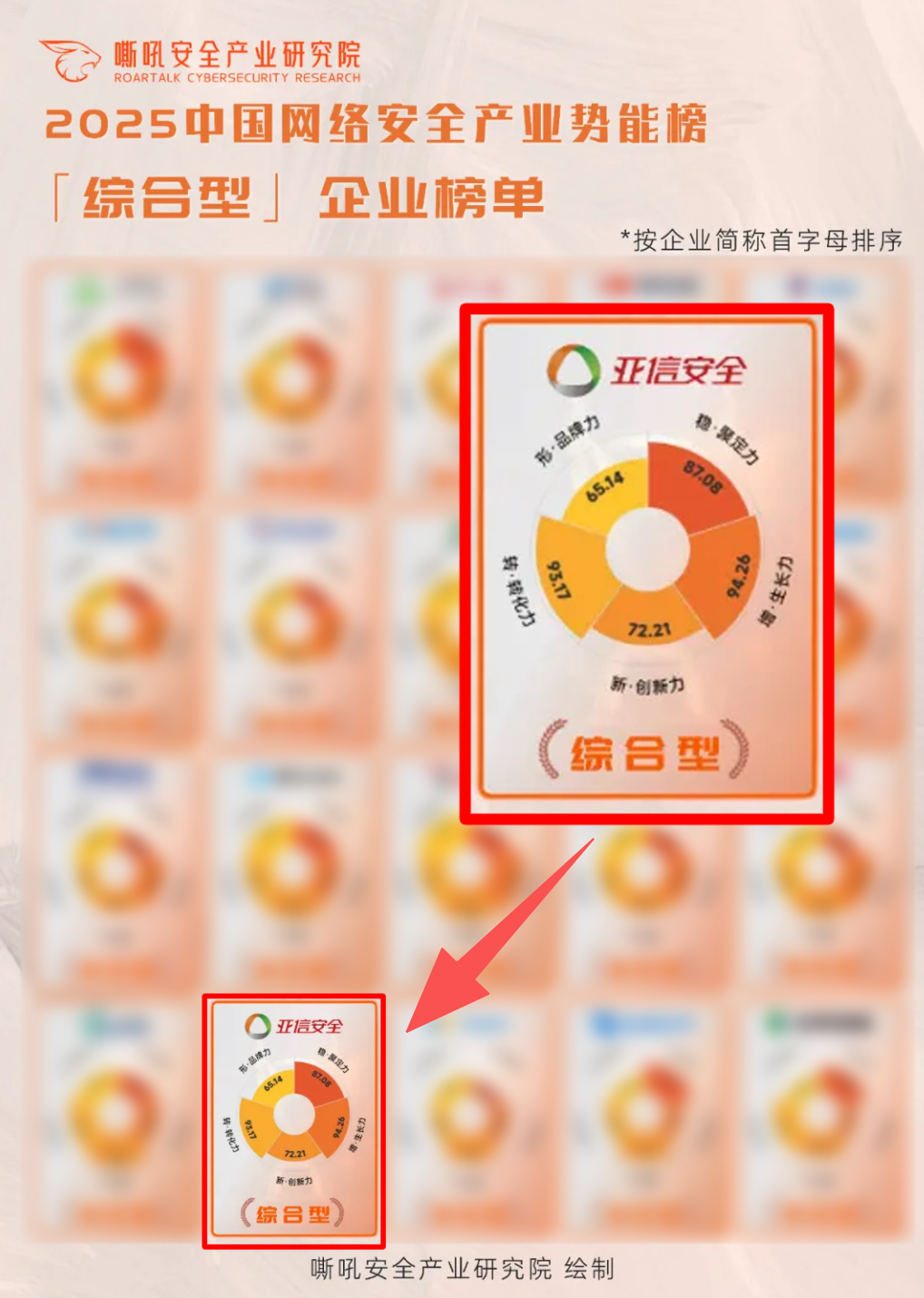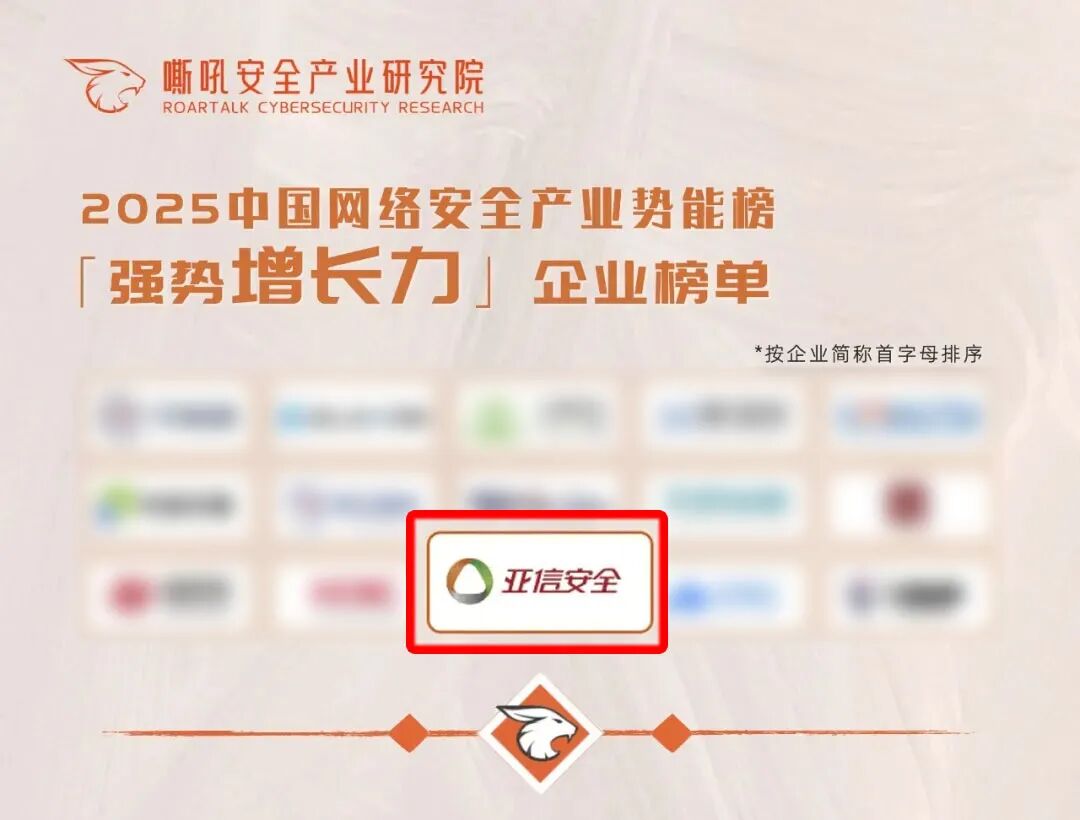 近日,嘶吼安全产业研究院正式发布《嘶吼 2025 中国网络安全产业势能榜》, 亚信安全 凭借在技术创新、业务发展与综合竞争力方面的突出表现,在「综合型」企业榜单中斩获两项维度得分第一、综合得分第二的优异成绩,同时成功入围「强势增长力」专项子榜,成为本次榜单中的双料赢家,彰显了公司在网络安全产业中的核心地位与强劲发展潜能。