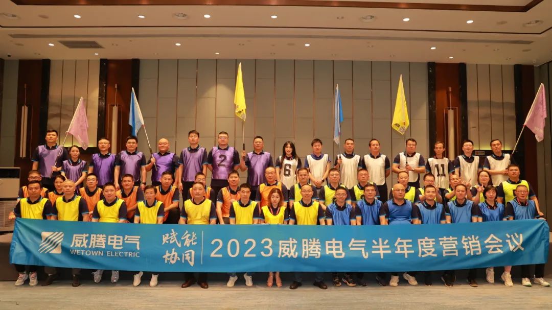 7月28至30日,威腾电气2023年半年度营销会议在天目湖涵田度假村召开。集团董事长蒋文功先生,集团总裁柴继涛先生、集团副总裁耿昌金先生、集团副总裁陆俊先生、集团副总裁吴波先生,以及各子公司、业务部门的领导、销售精英代表齐聚一堂,总结经验,指引方向,赋能协同,共同奋进。