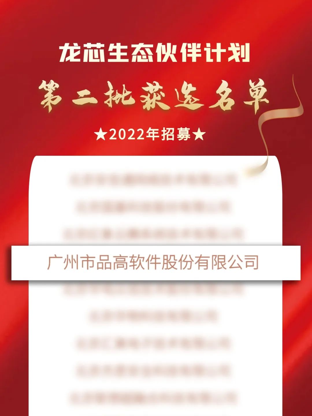 作为信创云平台厂商以及专业的云计算及行业信息化服务提供商,品高股份重视信创生态建设,始终注重与产业链上下游信创厂商的合作。近日,在龙芯中科发布的“龙芯生态伙伴计划”2022 年第二批名单中,品高股份凭借自主可控的核心技术、行业领先的服务经验、开放合作的态度立场,以及与龙芯系列产品的良好兼容性、稳定性,成功入围该名单!