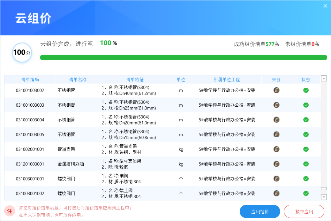 项目造价编制环节,内置于计价软件的云组价功能,与新点造价大模型深度融合,实现了土建、装饰、安装、园林、市政等多个专业的精准组价,匹配率90%+,单项目的组价准确率85%+。