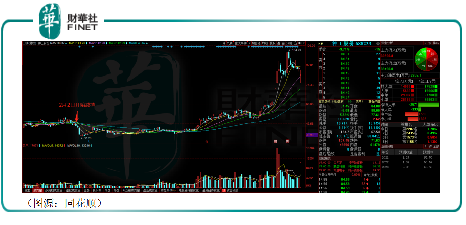 而航天科工创选择减持的时间点也颇为微妙。2月8日盘中,神工股份股价跌至年内低点31.2元,之后便一路走高。航天科工创在之后半年内通过大宗交易完成的减持成本也在36元至96元之间。