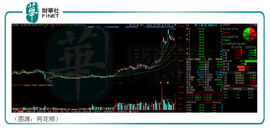 7月20日,公司股价小幅上涨3.9%,收报47.45元。自此股价一发不可收拾。8月3日,神工股份一字涨停。次日,神工股份成交放量,股价再收涨停。此时公司股价已上升至87元。8月12日,神工股份再录涨停。次日盘中创105元历史新高。