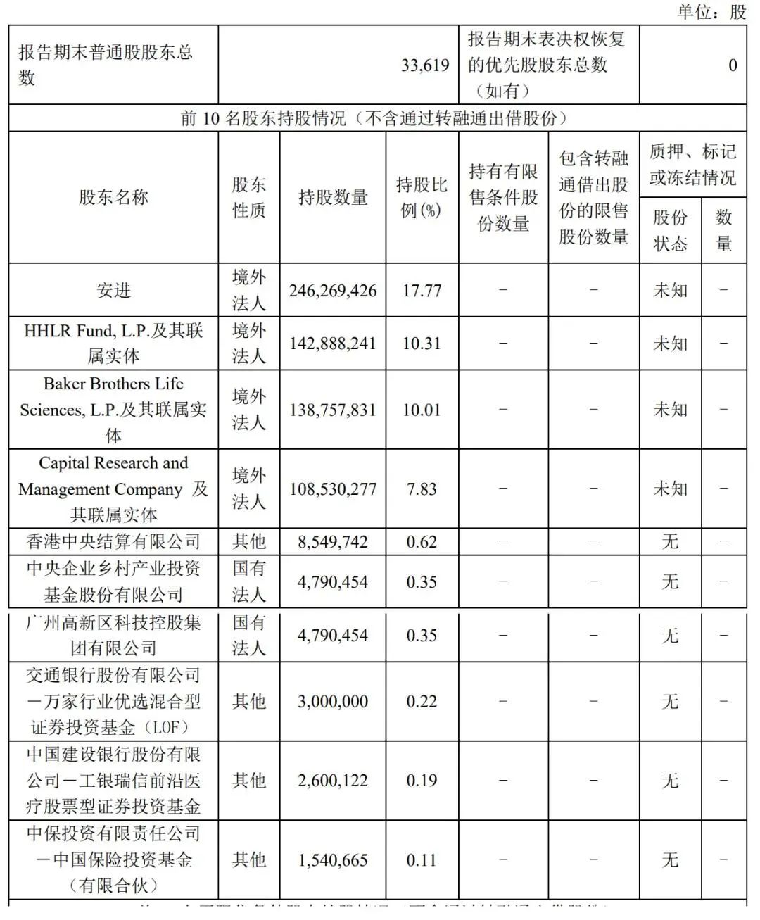 截至2024年9月30日,安进持股为17.77%,高瓴旗下HHLR Fund, L.P.及其联属实体持股为10.31%,Baker Brothers Life Sciences,L.P.及其联属实体持股为10.01%;