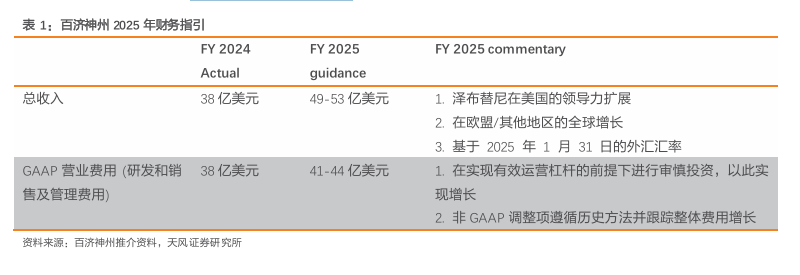 根据百济神州给出的收入指引,其2025 年的总收入为49-53 亿美元,GAAP 营业费用为41-44 亿美元,且计划在实现有效运营杠杆的前提下进行审慎投资,同时重申预计 2025年GAAP经营利润为正。