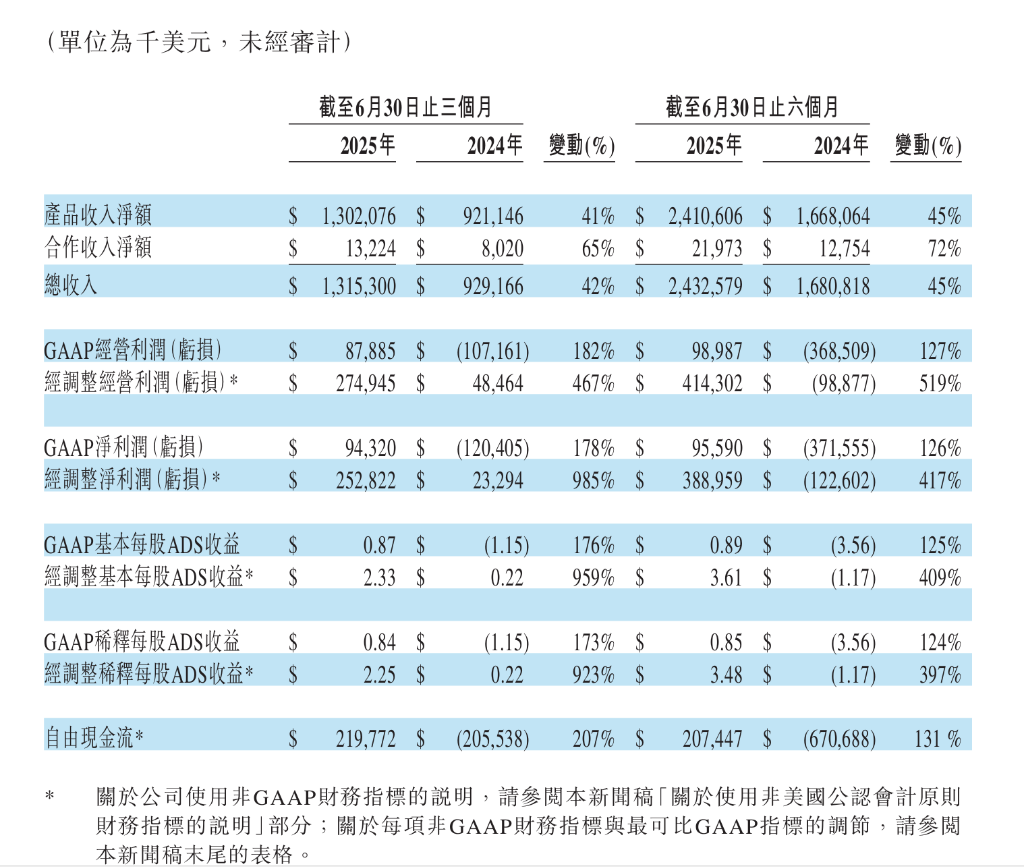 2025上半年,百济神州总收入24.3亿美元,同比增长45%。上半年GAAP经营利润为9899万美元,去年同期为亏损3.69亿美元。上半年净利润为9559万美元,去年同期为亏损3.72亿美元。