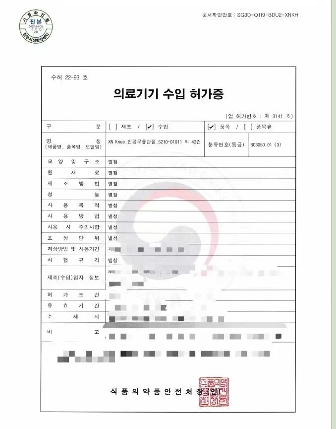 在注册环节更是严加考核。首先,春立医疗的制造工厂连续多年一次性地通过了韩国GMP审核,此次申请的XN膝关节在注册阶段,经过了一系列严格的资料审查、韩国的GLP实验室进行的生物相容性测试、相关ISO标准的力学、性能等国际测试,最终XN膝关节以其优异的材质,卓越的性能通过了种种严苛的考验,从而获批韩国国家三类医械注册证。
