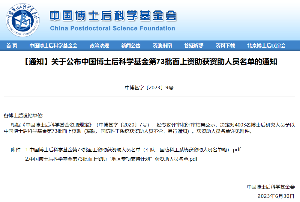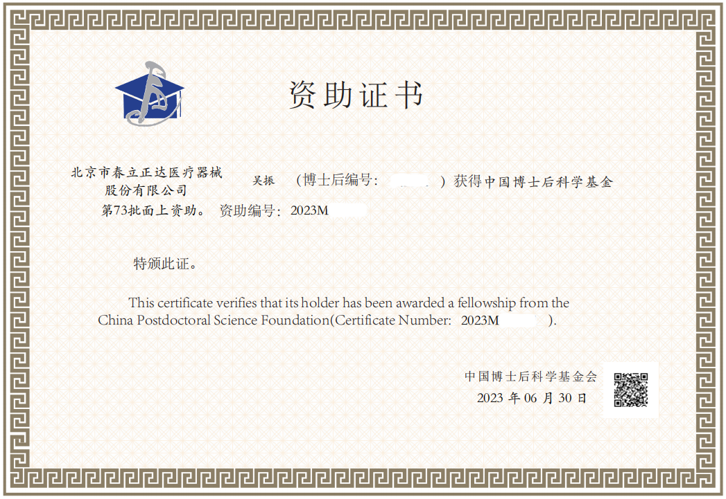 近日,中国博士后科学基金第73批面上项目获资助人员名单正式公布,春立医疗博士后吴振榜上有名,特此表示祝贺!