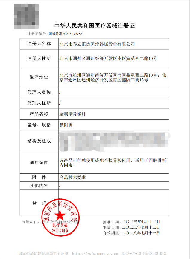 适用于四肢骨折内固定,可单独使用或配合接骨板使用