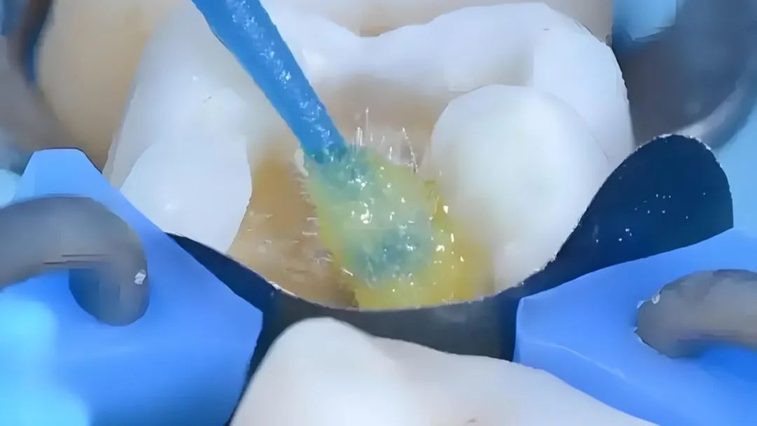 ?涂抹酸蚀剂:按照酸蚀剂说明书使用酸蚀剂,涂抹后水冲洗并吹气。