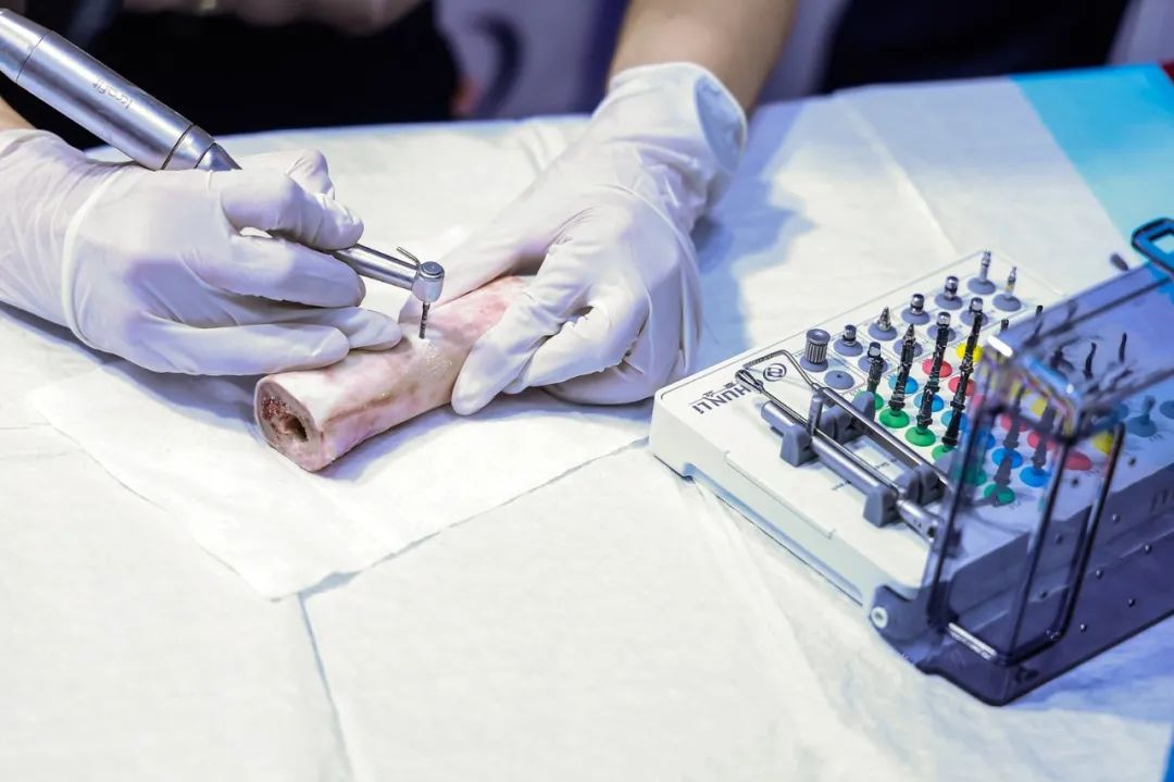实操环节通过LED大屏全程直播,全方位展示种植体操作流程,吸引众多医生驻足学习;技术团队现场答疑,反响热烈。