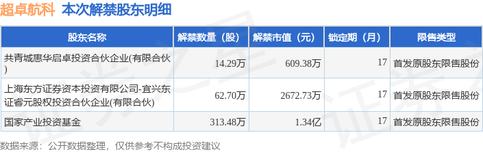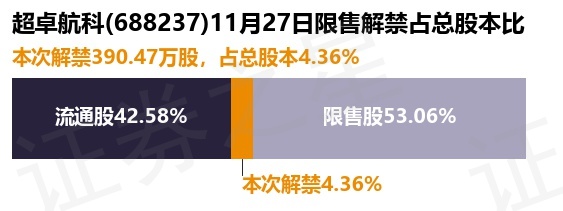 证券之星消息,根据市场公开信息整理,超卓航科(688237)于11月27日将有390.47万股限售股份解禁上市,为公司首发原股东限售股份,占公司总股本4.36%。最近一年内,该股累计解禁2017.36万股,占总股本的22.51%。本次解禁后,公司还有4754.12万股限售股份,占总股本53.06%。具体如下图所示: