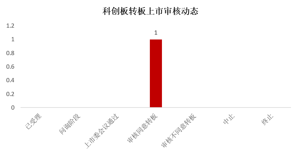 转板上市方面,目前同意转至科创板上市1家,合计1家。