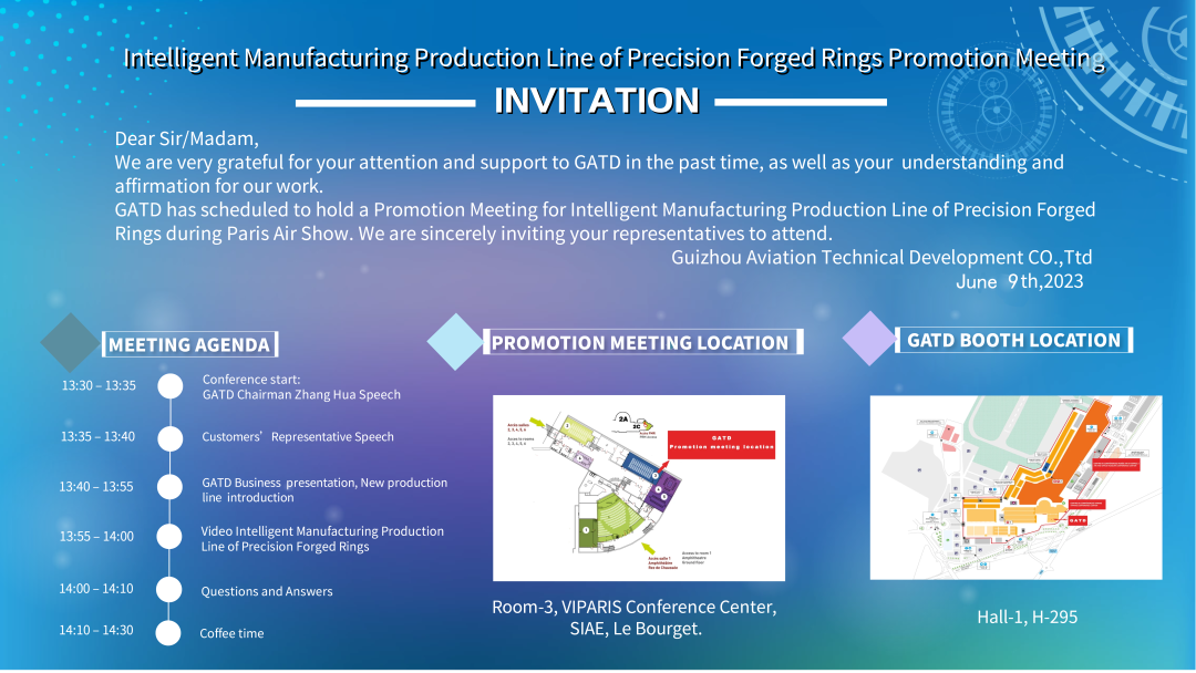 2023年6月19-25日,贵州航宇科技发展股份有限公司将携高端装备精密环锻件亮相第54届法国巴黎国际航空航天展览会,展位为1号展馆,H-295!