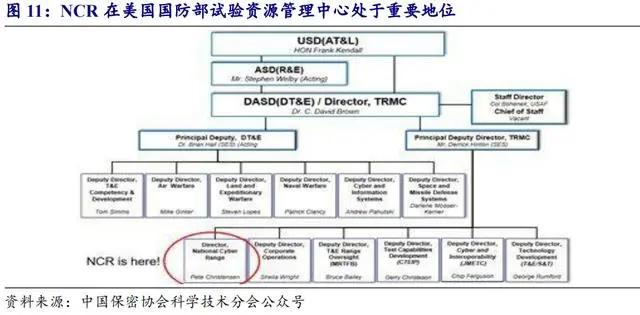 TRMC负责将美国国防部测试、培训和试验的使用能力“操作化”,NCR目前由洛克希德马丁公司管理,负责为试验鉴定部门(DoT&E)提供网络试验鉴定基础设施,目标是为美国国防部、陆海空三军和其他政府机构服务,提供虚拟环境来模拟真实的网络攻防作战,针对敌对电子攻击和网络攻击等电子作战的手段进行试验,以实现网络空间作战能力的重大变革,打赢未来网络空间战争。