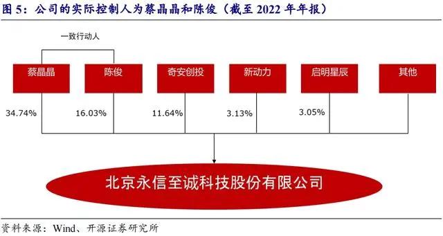 公司的实际控制人为蔡晶晶和陈俊,截至2022年底,其直接持有公司50.77%股份,通过员工持股平台及战略配售计划间接持有公司1.67%股份,直接或间接持有公司52.44%股份。