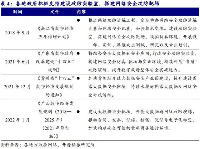 广东、浙江、广西、贵州等各地政府支持建设攻防实验室,搭建网络安全攻防靶场、模拟仿真环境,推进网络攻防演练工程;军队部门、国务院国资委对国有企业、国家能源局等部门亦发文推进网络安全仿真靶场建设,开展行业网络安全攻防实战演练。