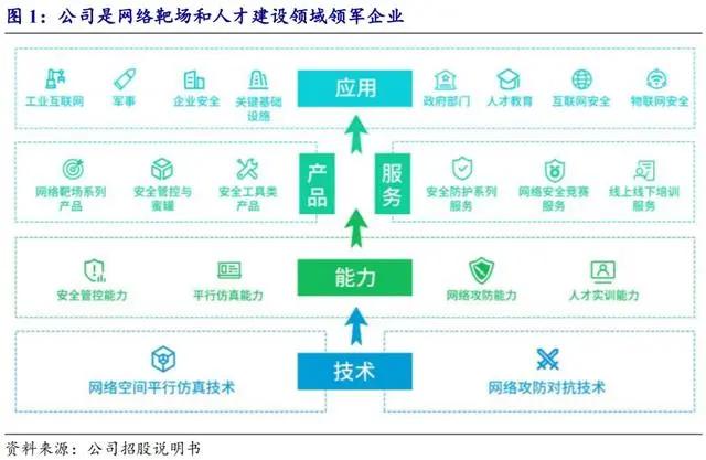 公司经过多年的研发和实践,形成了网络空间平行仿真技术和网络空间攻防对抗技术两大类核心技术,并推出网络靶场系列产品、安全管控与蜜罐系列产品、安全工具类产品、安全防护系列服务、网络安全竞赛服务和其他服务,其他服务主要包括线上线下培训服务。