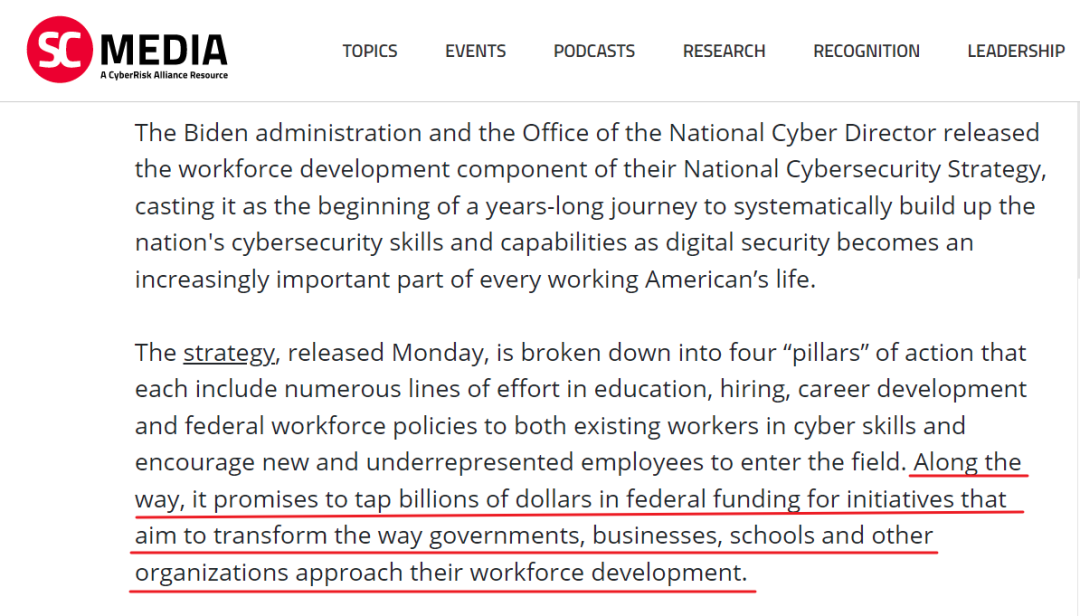 7月31日,美国国家网络总监办公室发布《国家网络人才和教育战略》(《National Cyber Workforce and Education Strategy》;以下简称《战略》)。本次《战略》是继拜登政府今年3月发布《国家网络安全战略》的进一步行动,标志着美国开启为期数年的系统性构建国家网络安全技能的计划。在此过程中,该战略承诺动用数十亿美元的联邦资金来支持各项倡议,旨在改变政府、企业、学校和其他组织在人才发展方面的方式,以满足当前和长期的网络人才需求。
