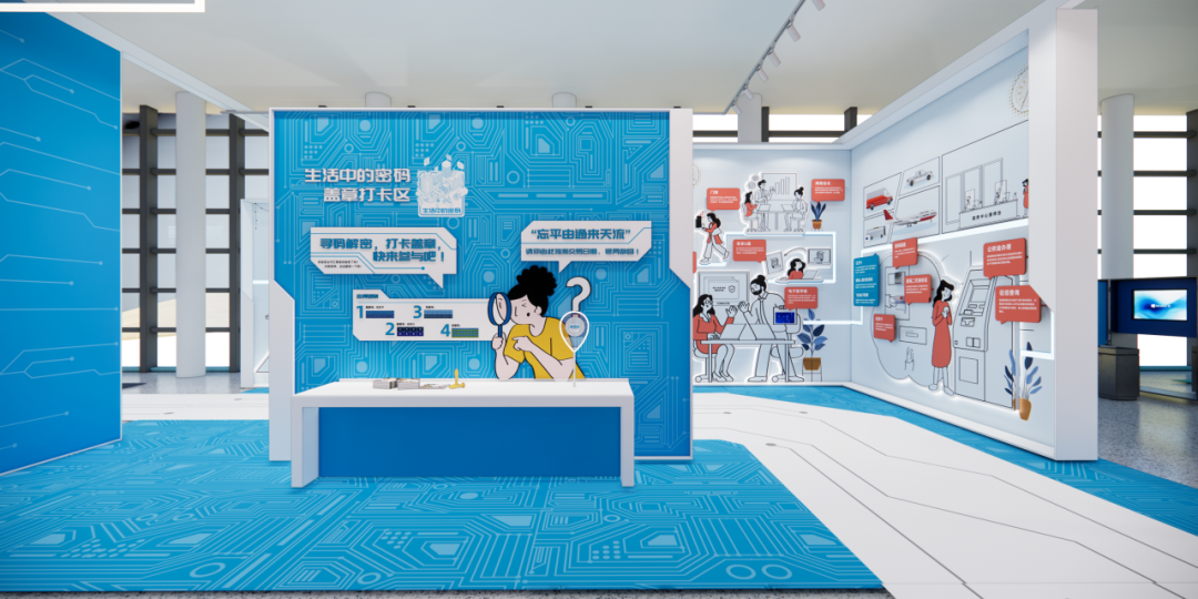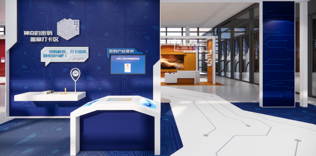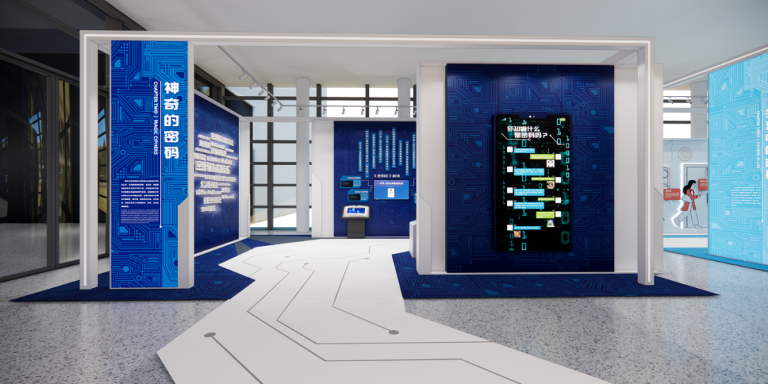 密码科普展搭配设计了科普学习线、藏宝探秘线两条体验路线,通过探秘游戏、互动体验激发观众对密码的兴趣,向公众普及商用密码、密码技术、密码应用等领域知识,宣传密码科学家精神,提升全民数字安全意识与技能。
