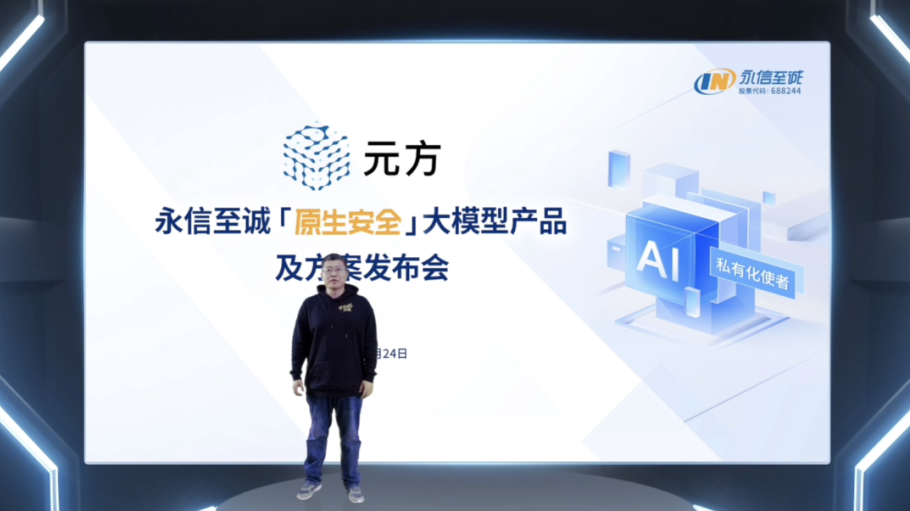 2月24日,永信至诚举行「元方」——AI私有化使者原生安全大模型产品及方案发布会,正式发布「元方」原生安全大模型一体机和原生安全行业大模型(量身定制)产品及方案,基于“产品乘服务”创新体系,以原生安全为核心,为企业提供从私有化部署到垂直场景应用的AI智能体建设方案。