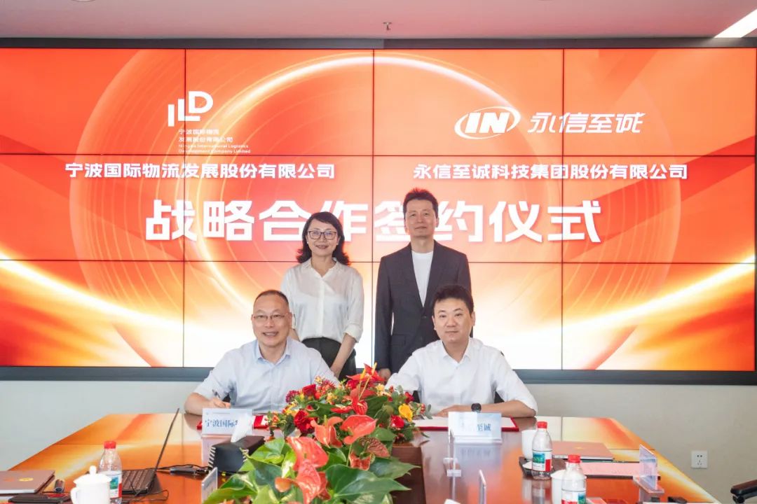 在宁波国际物流副董事长兼总经理郭歆、永信至诚董事长蔡晶晶见证下,宁波国际物流副总经理胡钟洲、永信至诚副总裁付磊代表双方签署战略合作协议。